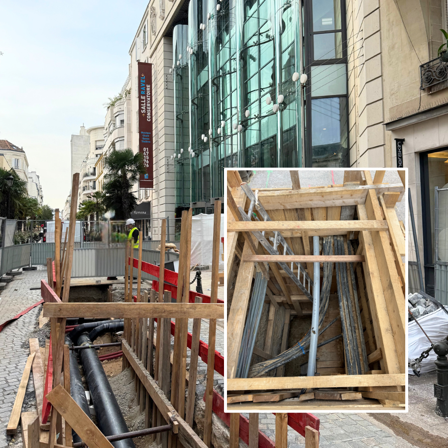 Le chantier se déroule en zone urbaine dense avec une forte concentration de réseaux souterrains, on peut heureusement compter sur la précision de nos plans pour faire passer les nouveaux tracés au bon endroit !